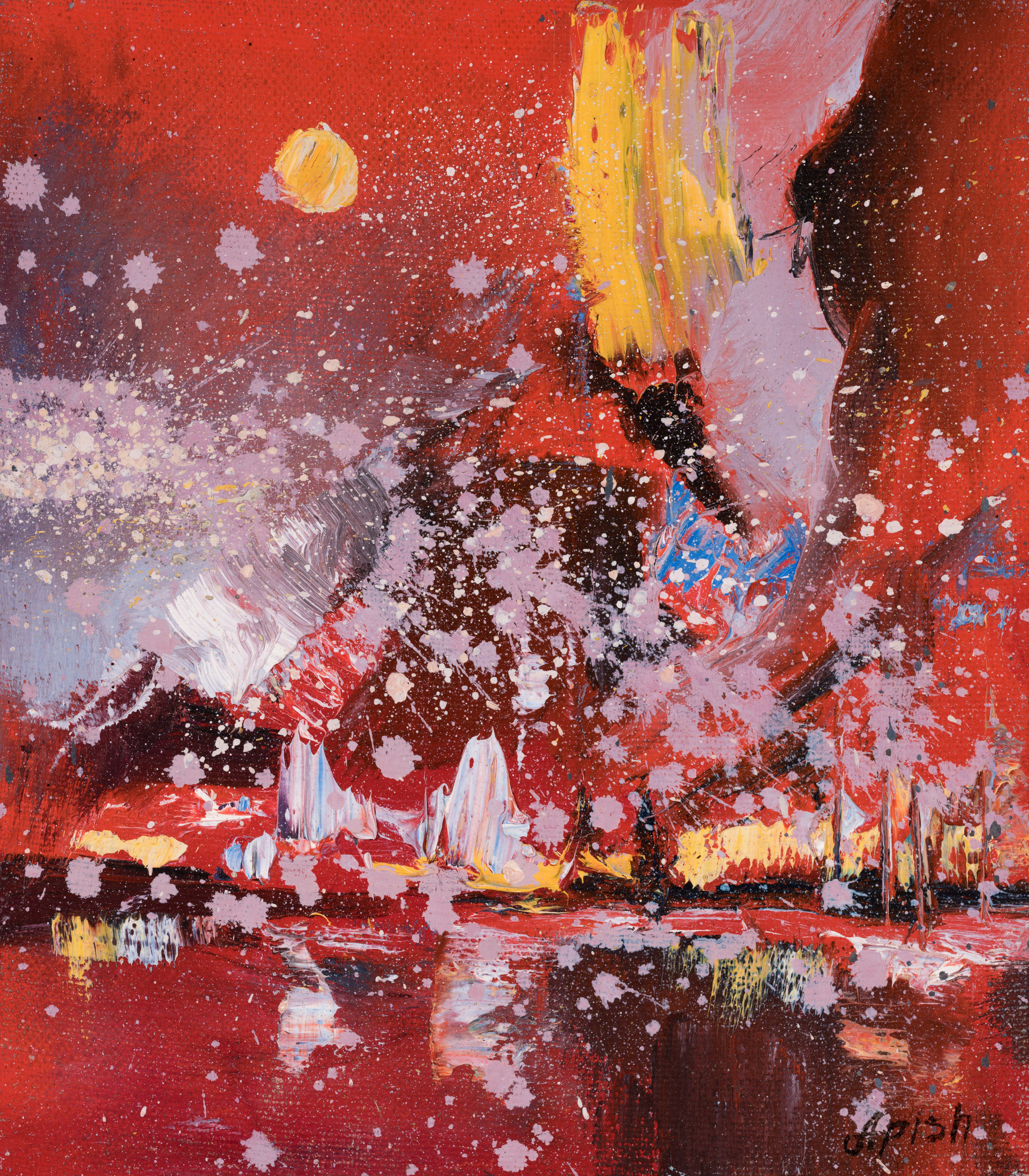 «Алая пристань» - Алексей Апиш (холст, масло, 17x17 см, 2021 (261MP)