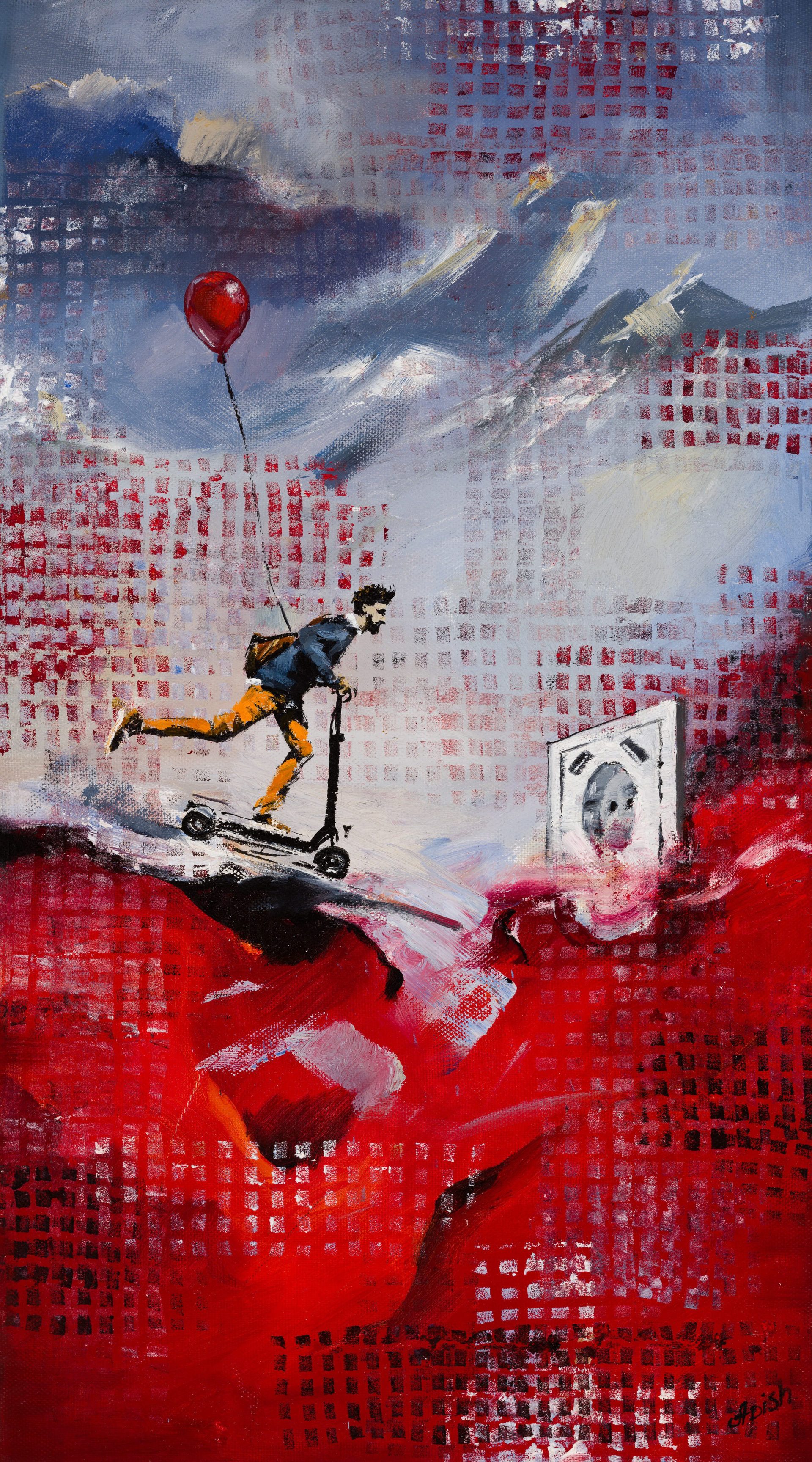 «Большая боль и маленькое счастье на краю пропасти...» - Алексей Апиш (холст, масло, 50x60 см, 2024 (333MP)