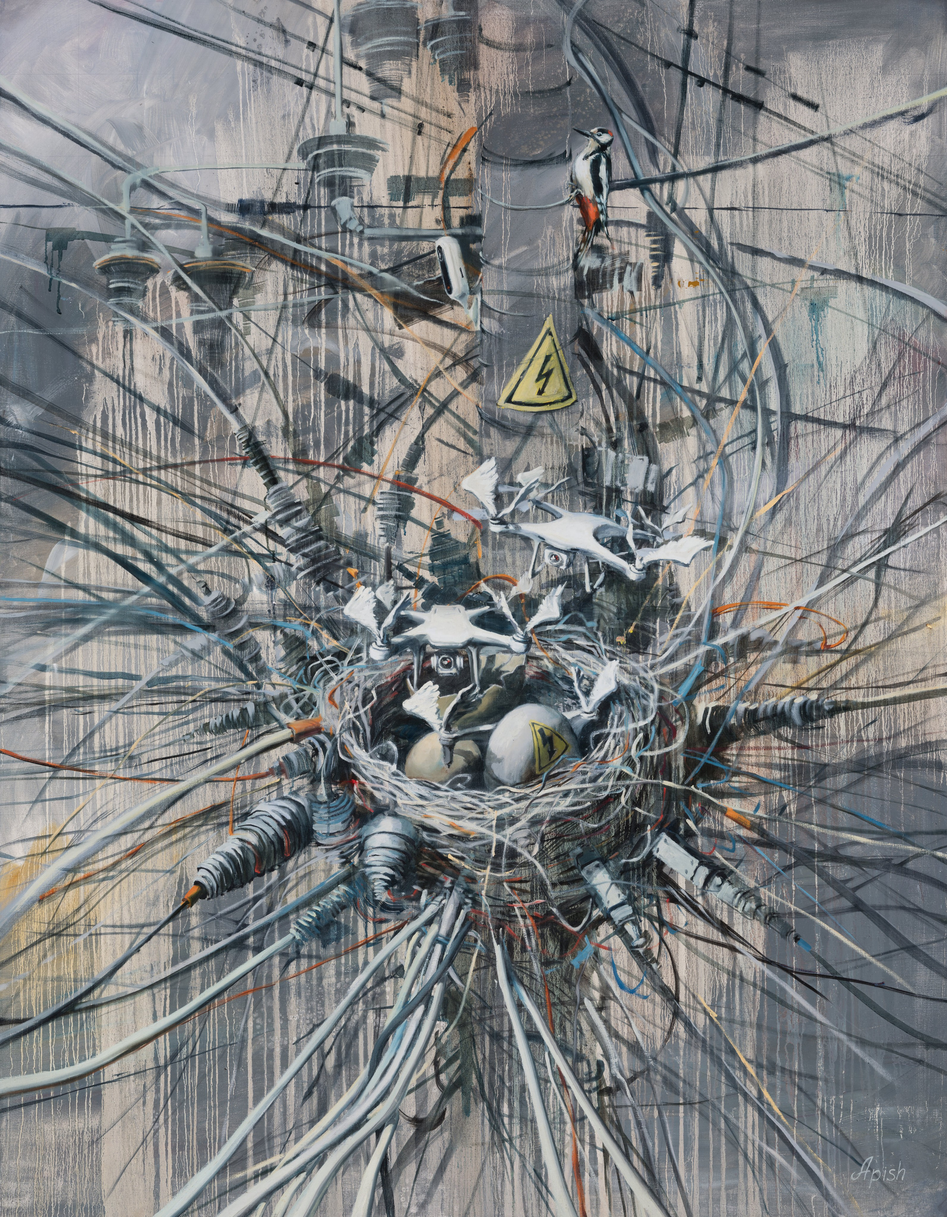 «Техногенное гнездо» - Алексей Апиш (холст, масло, 180x140 см, 2024 (373MP)