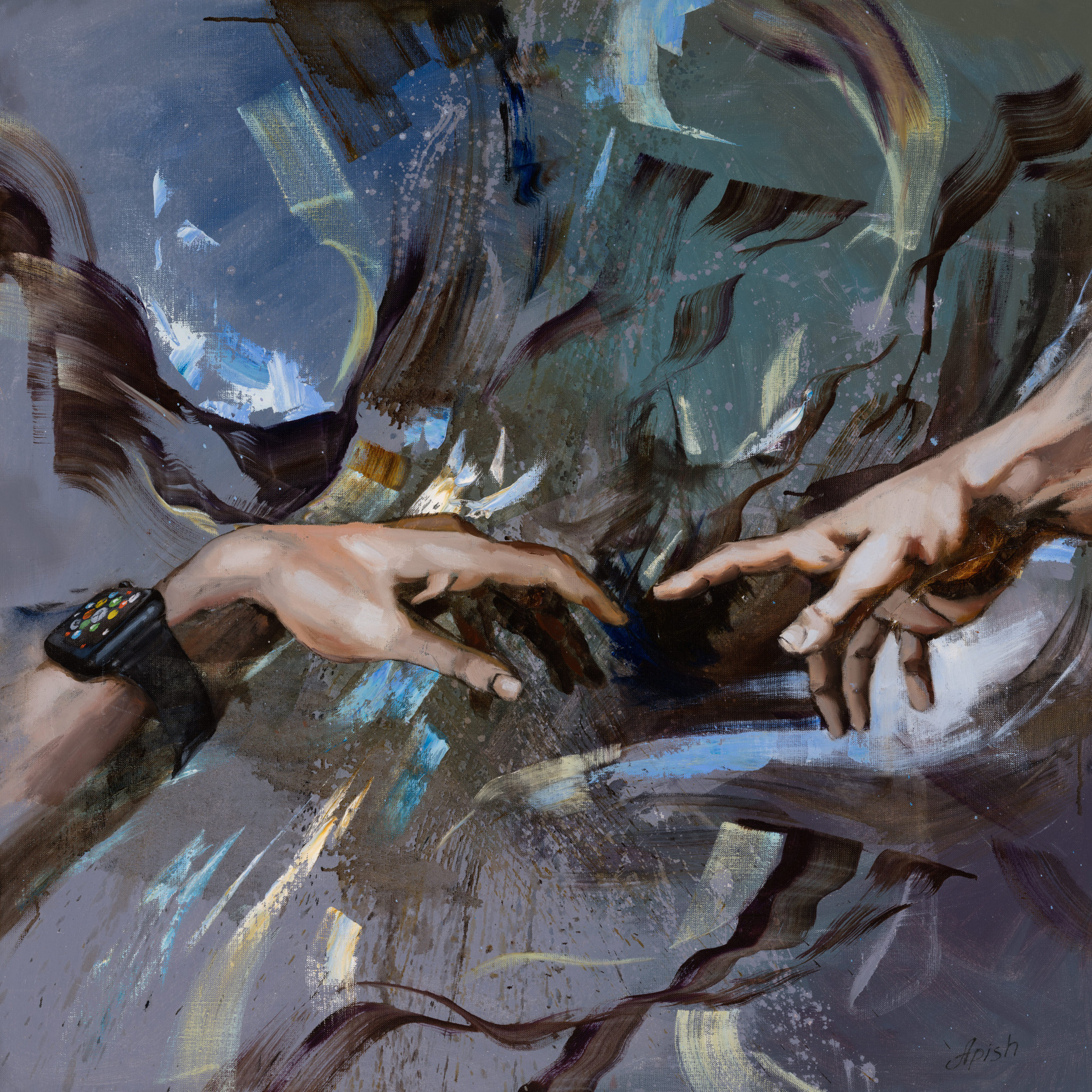 «Влияние технологий» - Алексей Апиш (холст, акрил, 180x120 см, 2024 (340MP)