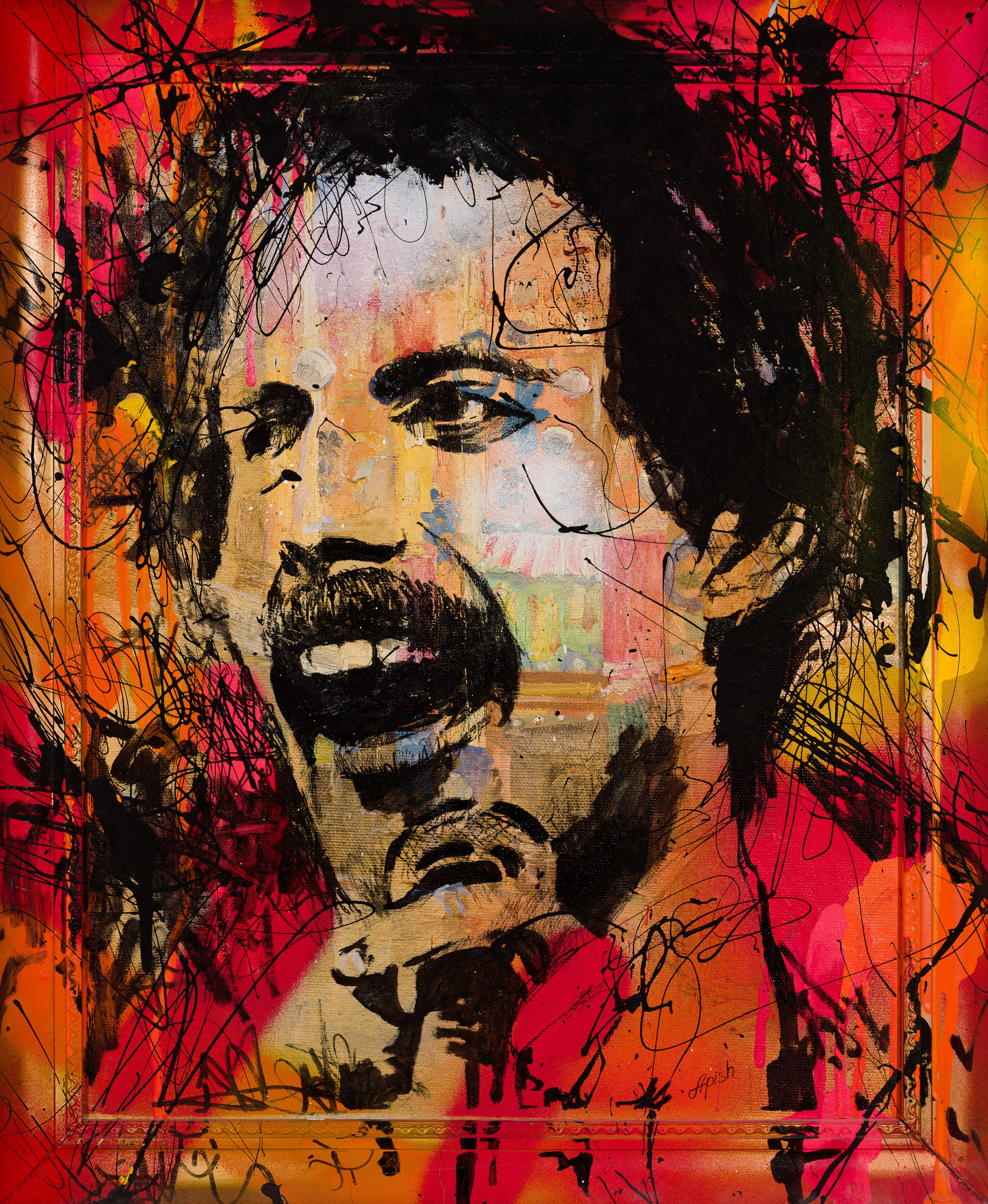 «Фредди Меркьюри» - Алексей Апиш (холст, смешанная техника, 50x40 см, 2021 (339MP)
