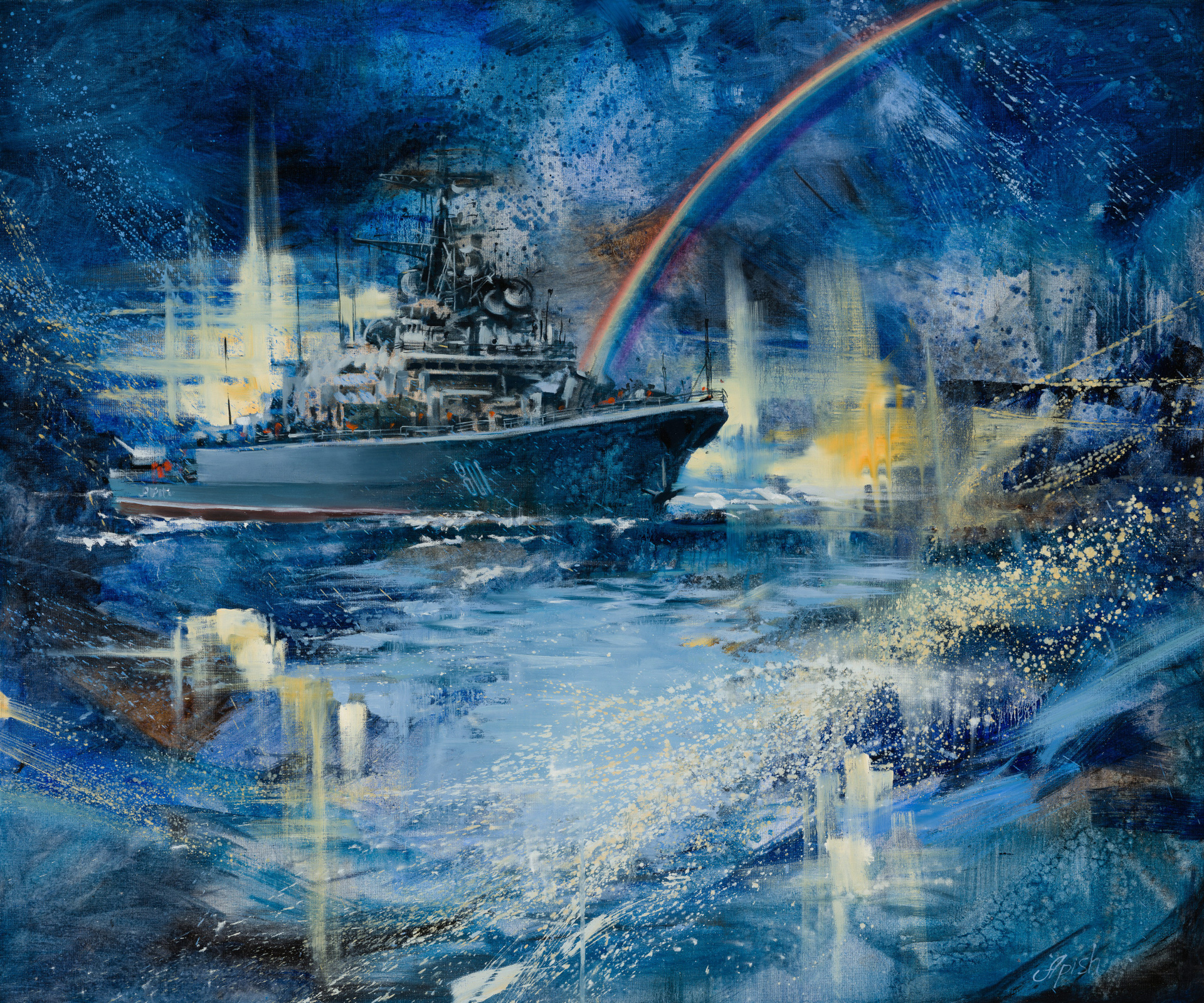 «Кораблю безопасней в порту, но он не для этого строился» - Алексей Апиш (холст, масло, 100x120 см, 2024 (354MP)