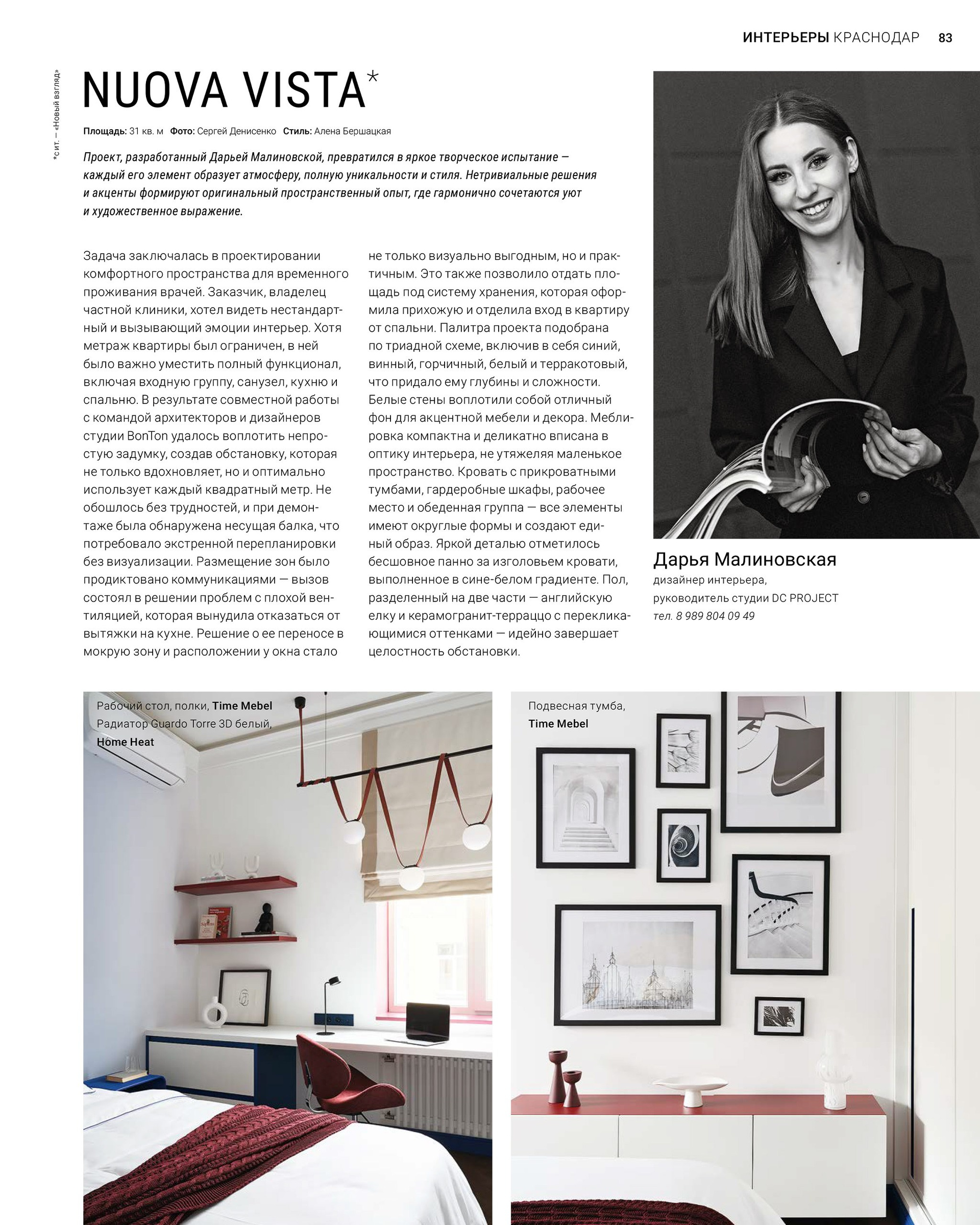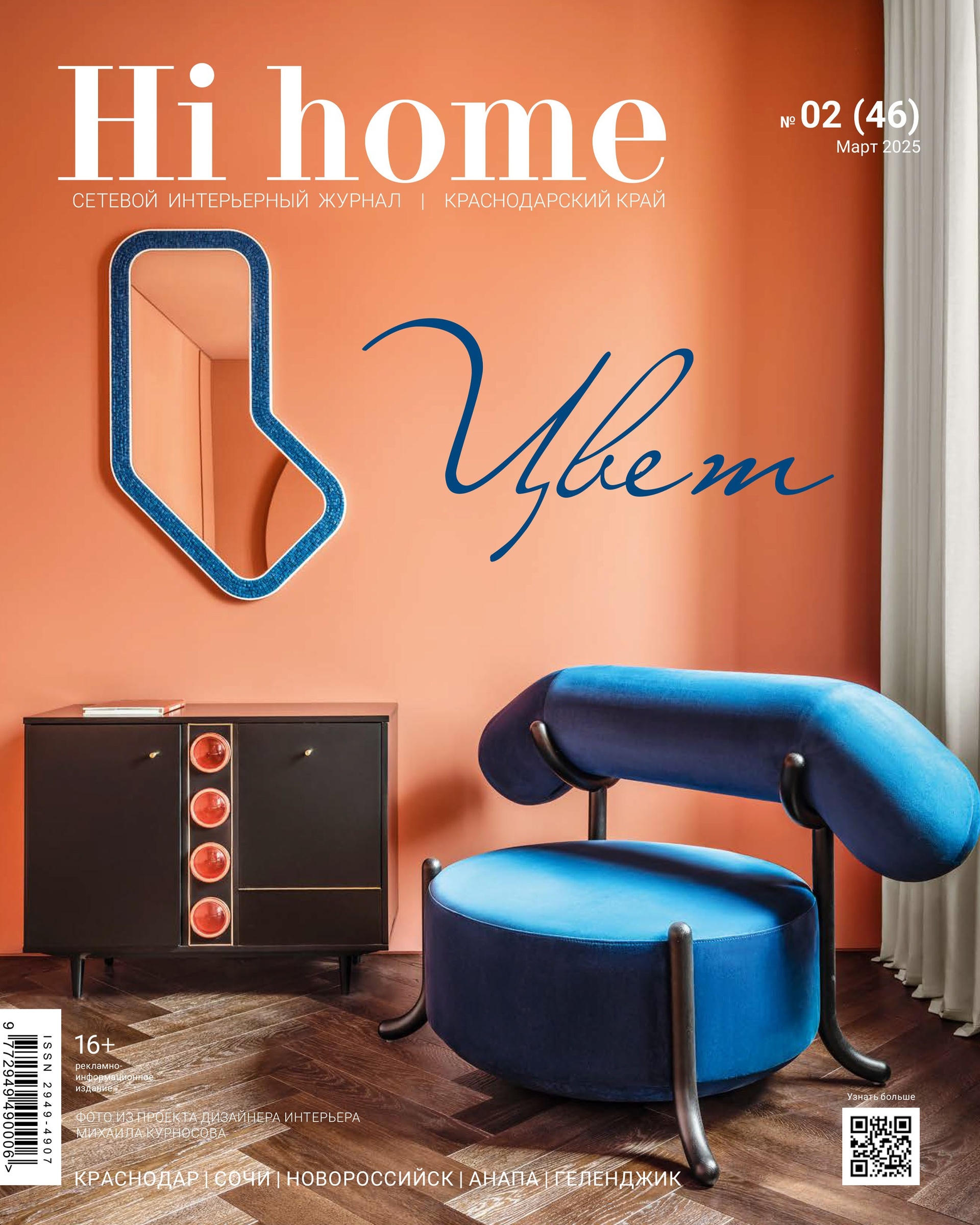 В номере «Цвет» журнала «Hi home Краснодарский край» (март 2025) опубликован проект Дарьи Малиновской «Nuova vista»